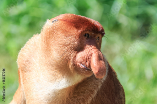 The proboscis monkey (Nasalis larvatus) or long-nosed monkey is a reddish-brown arboreal Old World monkey with an unusually large nose. It is endemic to the southeast Asian island of Borneo.