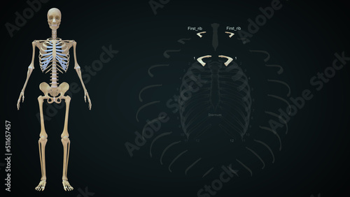 The rib cage is an arrangement of bones in the thorax of all vertebrates except the lamprey. It is formed by the vertebral column, ribs, and sternum and encloses the heart and lungs..