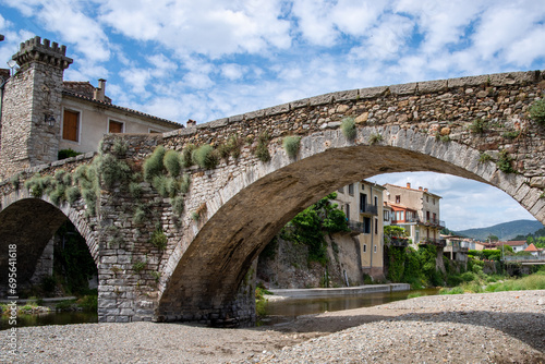 The Rieutord River flows through the French town of Sumene in the Cevennes, France