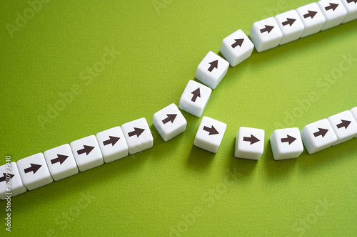 The road branches into two directions. Fork in the road. New perspectives and opportunities. Weigh the choice and choose the path. The concept of choosing a future direction of work.