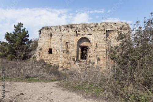 The ruins of crusader Fortress Chateau Neuf - Metsudat Hunin is located at the entrance to the Israeli Margaliot village in the Upper Galilee in northern Israel
