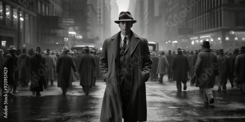 The scene unfolds in the heart of the city, where towering skyscrapers serve as the backdrop for this evocative portrayal.
