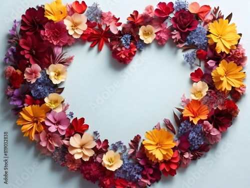 The shape of a heart from above made of colorful flowers