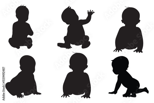 The silhouettes of the child 0-1 year Boy and Girl Baby. Set of Babes Silhouettes icon. Variety Design Newborn baby. Eps 10
