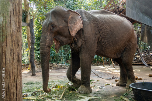 The skinny Asian elephant was raised in a human animal shelter.