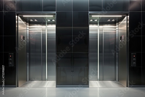 The sleek design of modern elevators enhances the contemporary architecture of the office building, creating a seamless blend of form and function