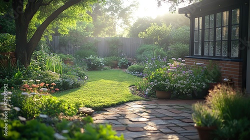 The soft, hazy light of a summer afternoon in a quiet garden
