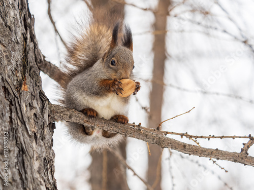 squirrel, animal, red, background, tree branch, snow, winter, autumn, help, harmony, wild, tail, rodent, brown, cute, eye, eat, fluffy, forest, fur, mammal, natural, nature, park, small, tree, wildlife, wood, paw, fauna, feeding, funny, furry, hair, 1, sitting, ecology, care, claw, cold, eurasian, fir