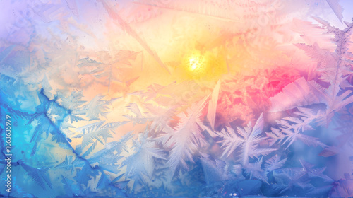 The sunrise shines on the frozen window