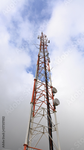 The tall metal mast with communication antennas