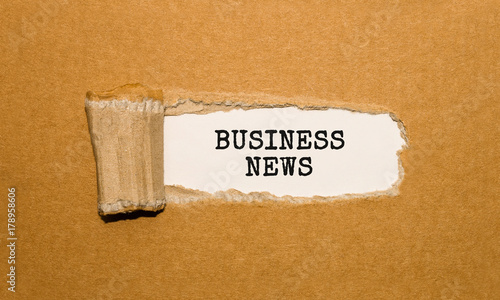 The text Business News appearing behind torn brown paper