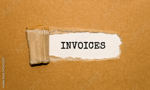 The text INVOICES appearing behind torn brown paper