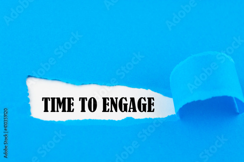 The text TIME TO ENGAGE appearing behind torn blue paper