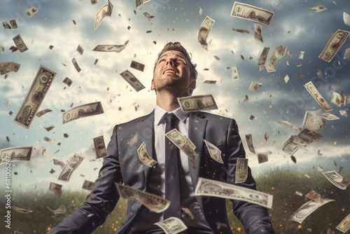 The Wealthy Businessman Surrounded by a Sea of Cash