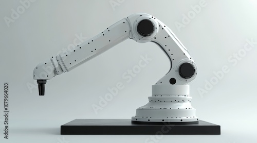 The white industrial robot arm is installed on a black base with a clean white background, showcasing modern automation technology and mechanical engineering