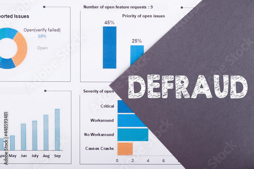 The word DEFRAUD is written on a gray background with diagrams and graphs.