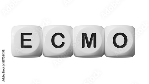 The word ecmo is written on wooden dice . Medical concept.close up of wooden dice,Business Concept.Supports PNG files with transparent backgrounds.