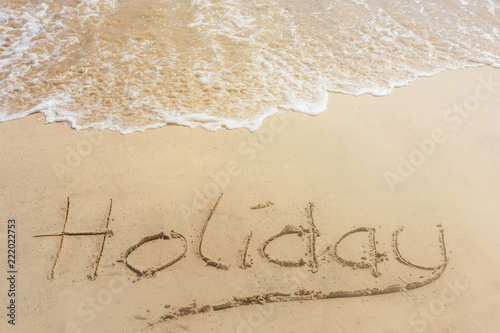 The word holiday written in the sand at the beach