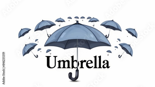 The word umbrella and many umbrellas on the background. Learning English