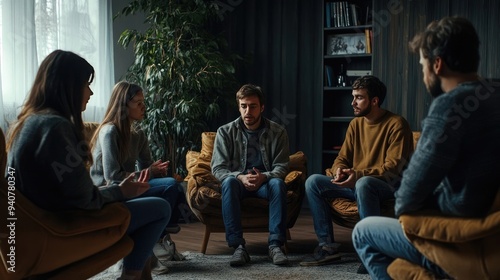 Therapeutic Group Session with People Talking About Overcoming Addictions