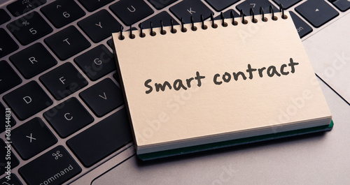 There is notebook with the word Smart contract.It is as an eye-catching image.