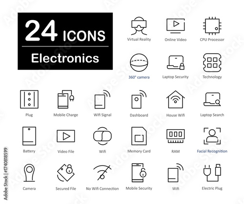 These are 24 beautiful small, pixel perfect electronics interface vector icons.