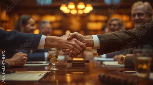 They shake hands and congratulate each other for a job well done