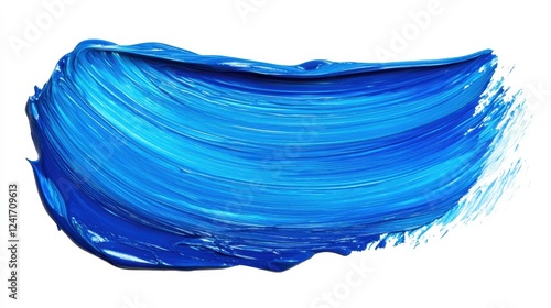 Thick blue paint stroke with texture and depth on clean white backdrop