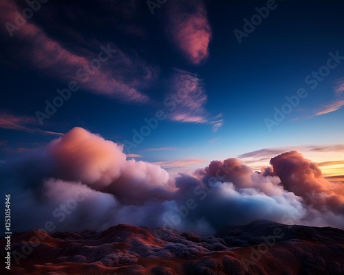 Thick clouds of wispy smoke create an ethereal atmosphere in a darkened environment during nighttime photography