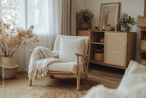 this banner showcases a nordic-themed decor with warm wood furniture and earthy tones, ideal for a scandinavian home shop