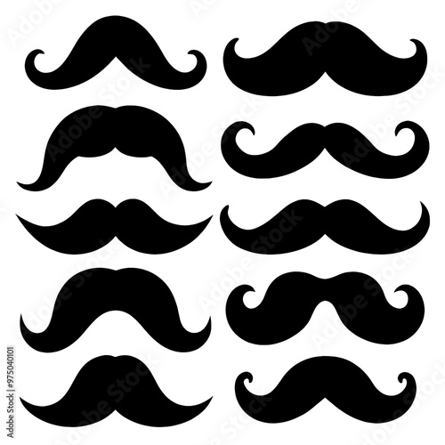 This collection features multiple black silhouette mustaches arranged artistically ideal for design projects or festive decorations