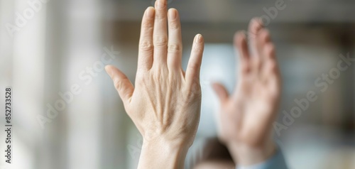 This image captures a young businesswoman giving a high five to her male team member in the office, highlighting a moment of collaboration and achievement.