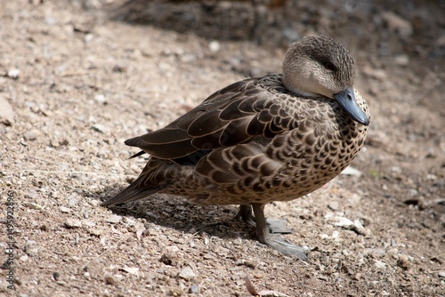 this is a side view of a teal duck