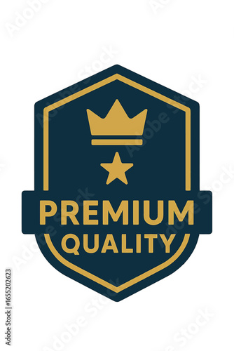 This premium quality badge features a crown and star design, signifying excellence. Modern flat vector sticker label with icon and badge style, transparent background
