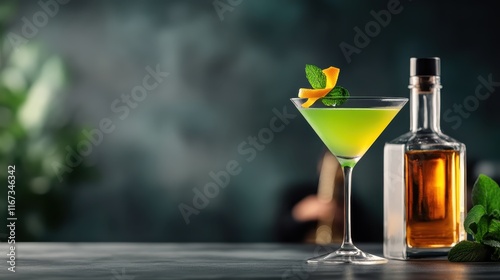 This refreshing green cocktail elegantly garnished with mint and citrus adds a touch of charm and sophistication, ideal for summer parties and upscale gatherings.