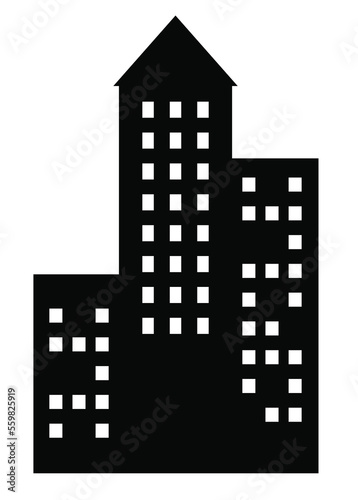 This set of illustrations features a black skyscraper
