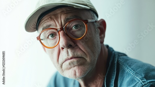 Thoughtful Elderly Man with Glasses and Cap