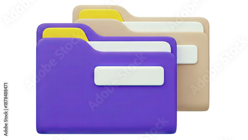 Three 3D Folders in Purple, Beige, and Yellow