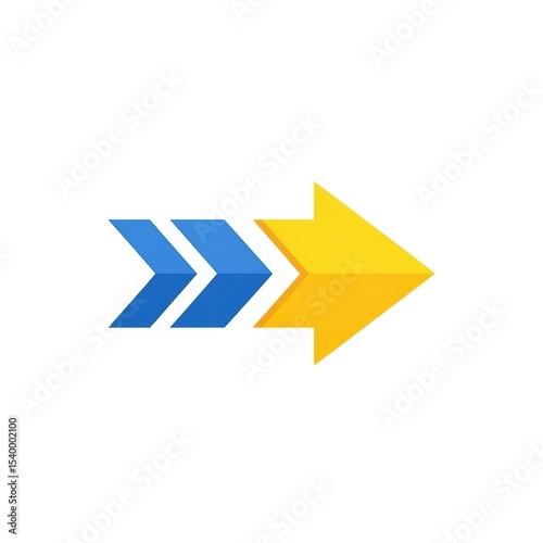 Three Arrows Pointing Right in Blue and Yellow on White Background