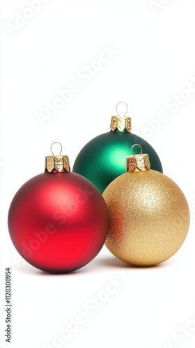 Three beautiful Christmas ornaments in red, green, and gold, perfect for holiday decorations and festive celebrations.