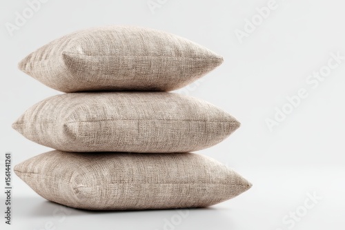 Three beige, rectangular throw pillows stacked neatly on a white background; subtle textural weave