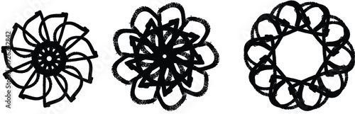 Three black floral patterns on a white background
