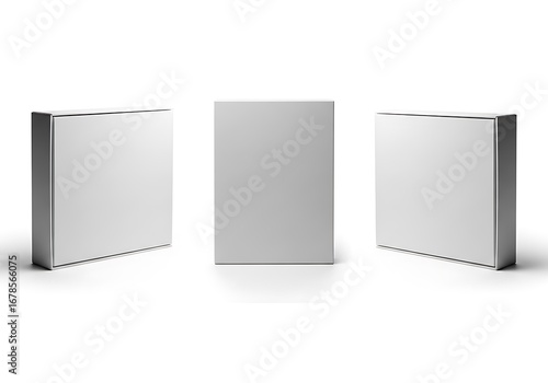 Three Blank White Boxes Studio Shot, Minimalist Product Packaging Mockup