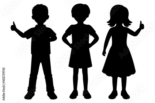 Three children standing and giving thumbs up silhouette