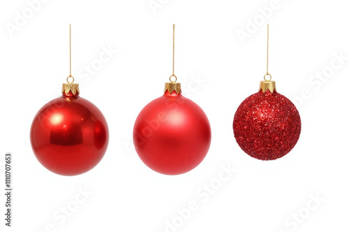 Three Christmas ornaments different textures red finishes golden caps