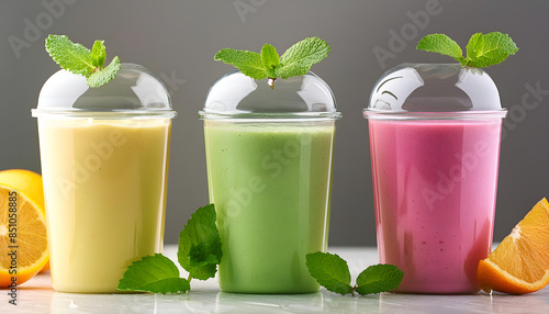 Three Colorful Smoothies With Mint Garnishes and Orange Slices