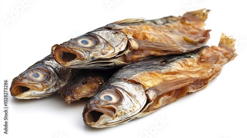 Three Dried Fish On White Background