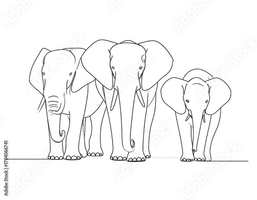 Three elephants in a line