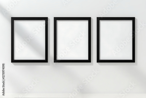 Three Empty Black Picture Frames on a White Wall