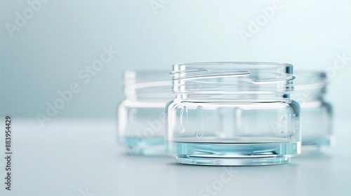 Three empty glass jars on a white surface, ideal for showcasing cosmetic or beauty products.